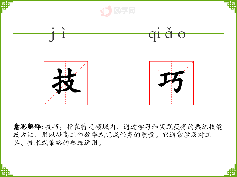 技巧:指在特定领域内,通过学*和实践获得的熟练技能或方法,用以提高工作效率或完成任务的质量。它通常涉及对工具、技术或策略的熟练运用。