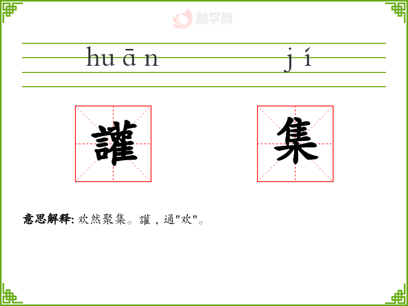 集[ jí ] 1. 同本义。 【引证】 《说文》-集,群鸟在木上也。 《尔雅》-集,会也。 《诗·唐风·鸨羽》-集于苞栩。 《诗·周南·葛覃》-黄鸟于飞,集于灌木。 【组词】 集隼、 集凤 3. 引申为停留。 【引证】 《国语》-人皆集于苑,己独集于枯。 《孟子·梁惠王上》-齐集有其一。 宋·范仲淹《岳阳楼记》-沙鸥翔集。 《聊斋志异·促织》-旋见鸡伸颈摆扑;临视,则虫集冠上,力可不释。 [更多解释]