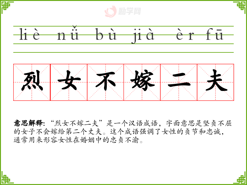 1.烈女不嫁二夫的拼音是什么?烈女不嫁二夫怎么读?