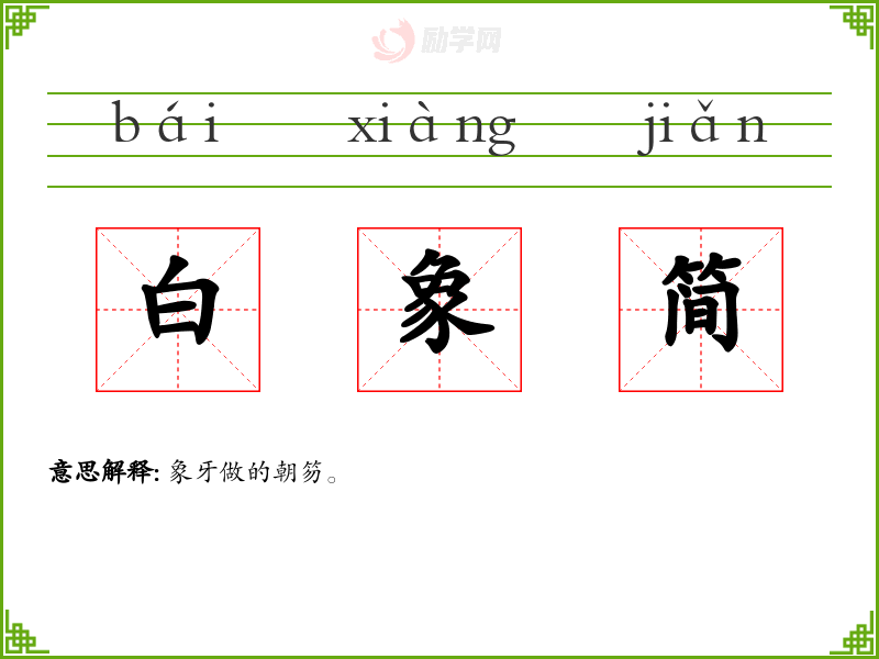 (象形。甲骨文字形,突出其长鼻。本义:大象,一种哺乳动物)。