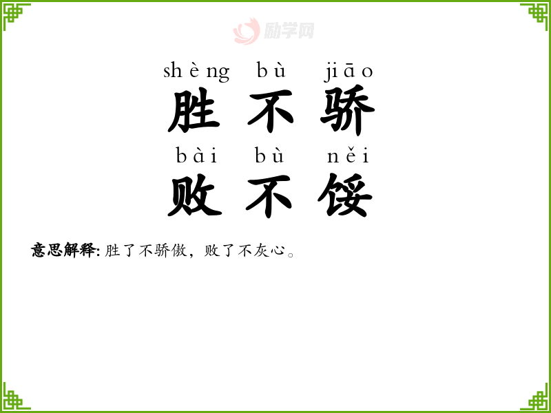 1.胜不骄,败不馁的拼音是什么?胜不骄,败不馁怎么读?