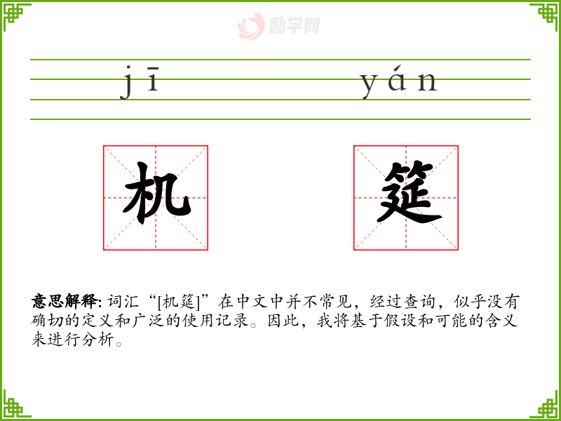 词汇“[机筵]”在中文中并不常见,经过查询,似乎没有确切的定义和广泛的使用记录。因此,我将基于假设和可能的含义来进行分析。