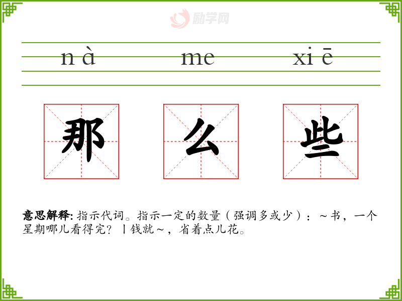 那么些的意思是:指示代词。指示一定的数量(强调多或少):~书,一个星期哪儿看得完?丨钱就~,省着点儿花。