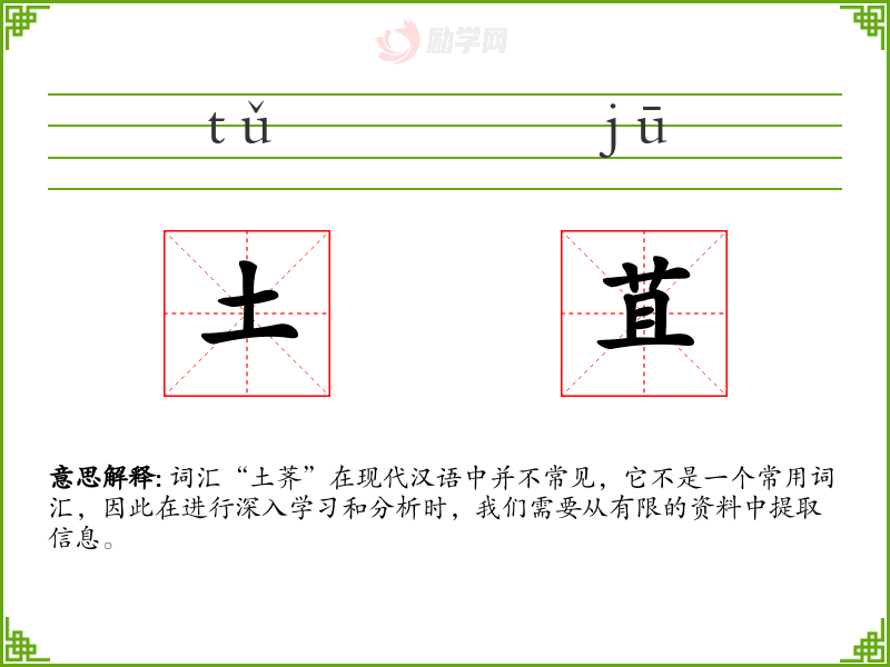 词汇“土荠”在现代汉语中并不常见,它不是一个常用词汇,因此在进行深入学习和分析时,我们需要从有限的资料中提取信息。