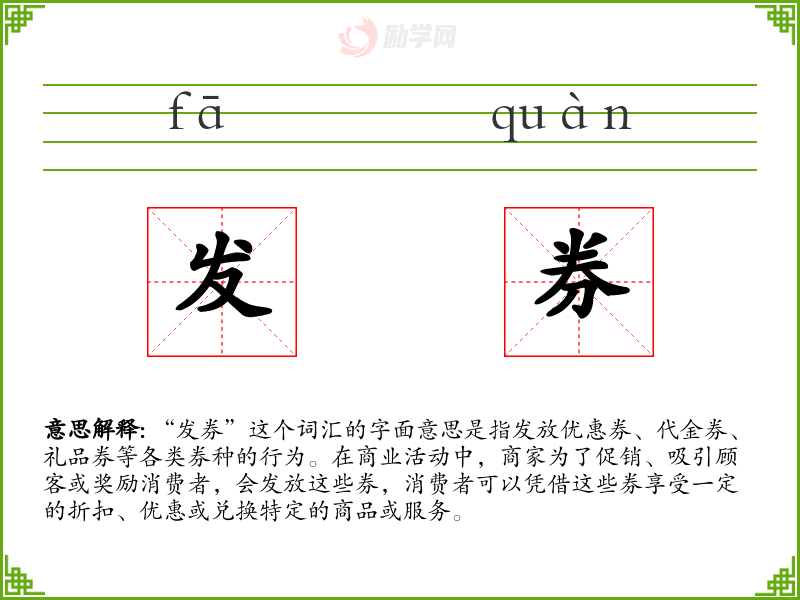 “发券”这个词汇的字面意思是指发放优惠券、代金券、礼品券等各类券种的行为。在商业活动中,商家为了促销、吸引顾客或奖励消费者,会发放这些券,消费者可以凭借这些券享受一定的折扣、优惠或兑换特定的商品或服务。