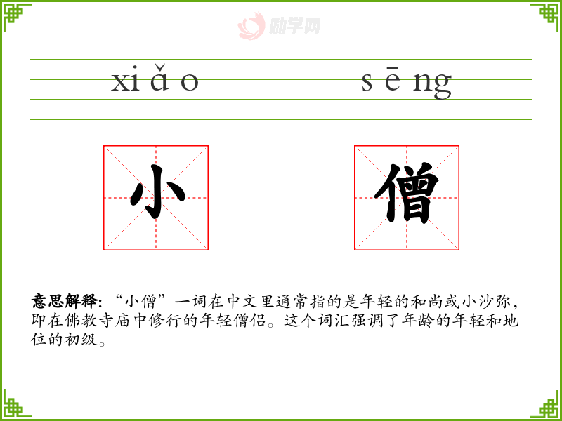 - 同义词:小沙弥、年轻僧侣