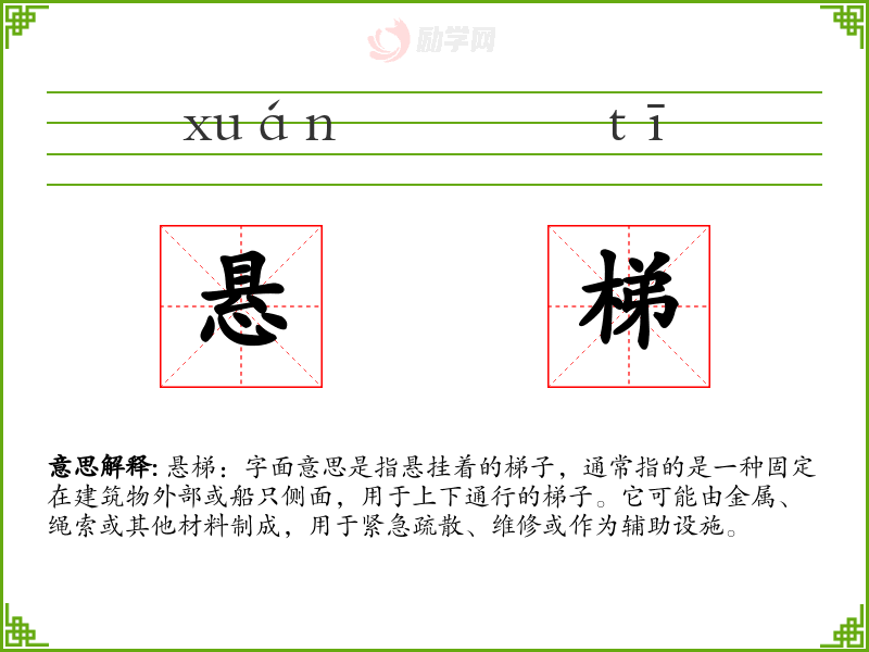 1.悬梯的拼音是什么?悬梯怎么读?