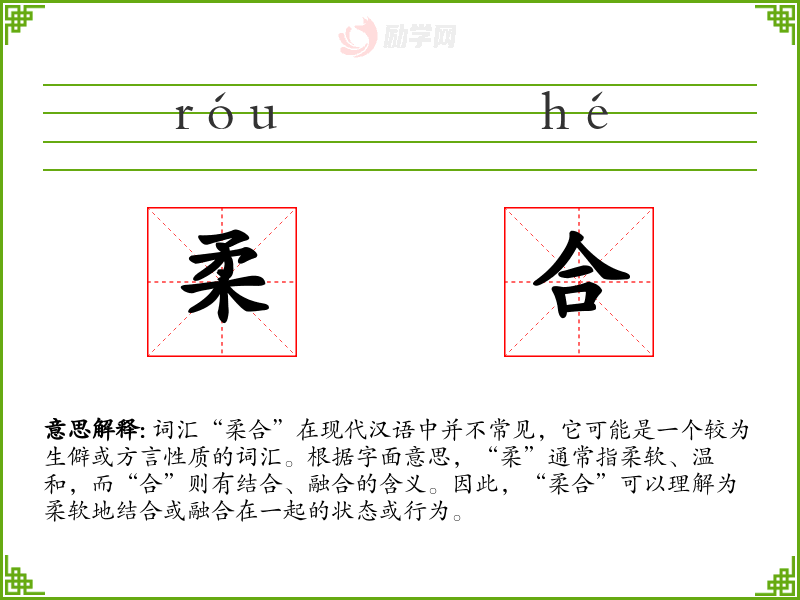 由于“柔合”不是一个常用词汇,其在不同语言或文化中的对应词汇可能不太明确。