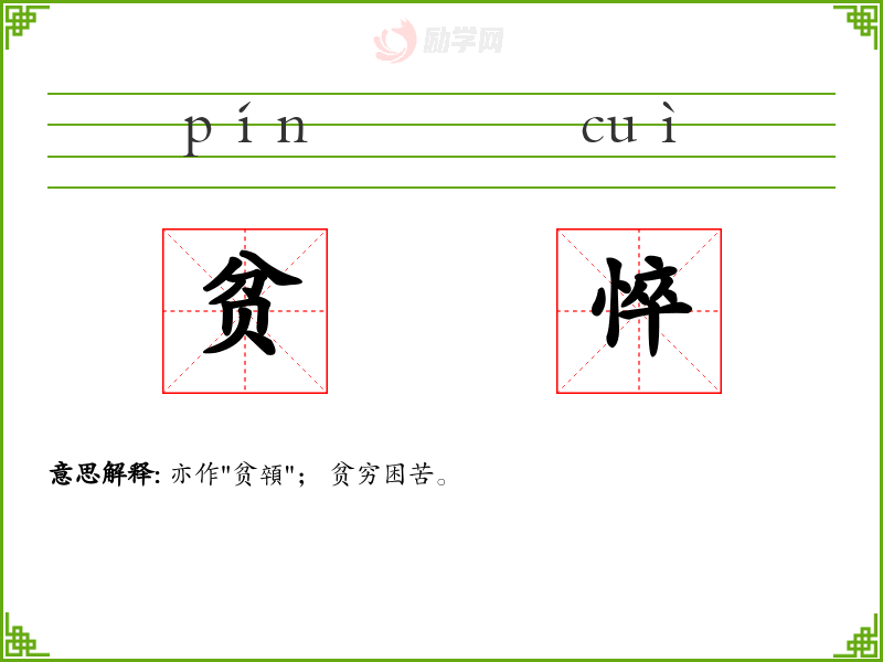 1.贫悴的拼音是什么?贫悴怎么读?
