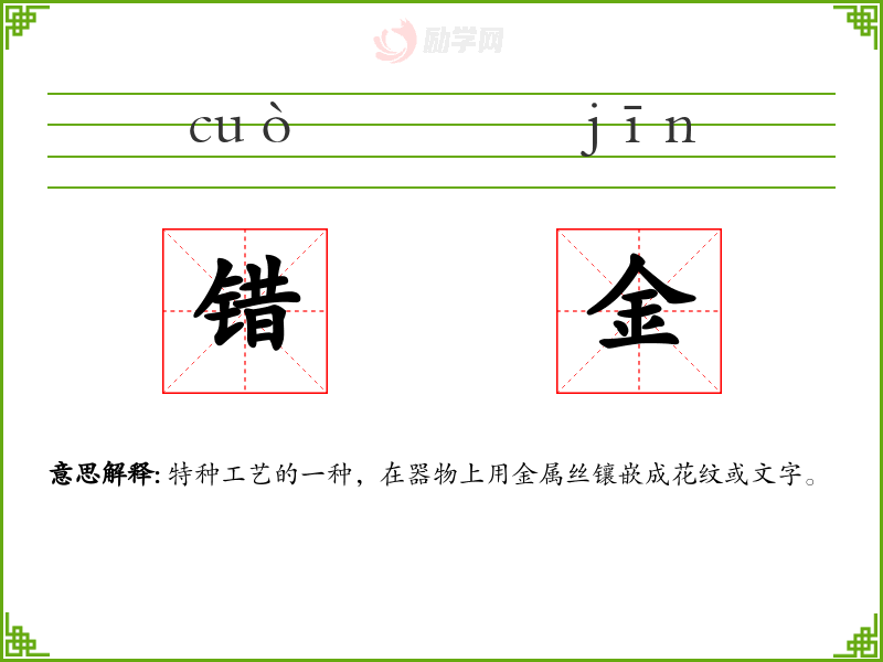 1.错金的拼音是什么?错金怎么读?