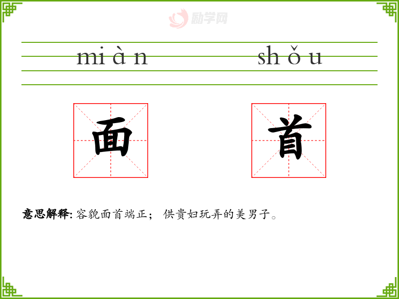 面首的意思是:容貌面首端正; 供贵妇玩弄的美男子。