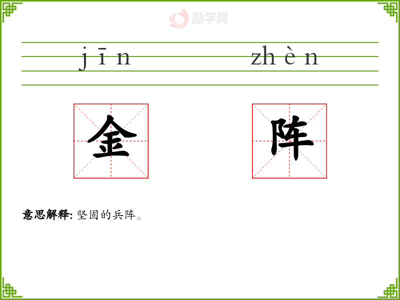 金阵的意思是:坚固的兵阵。