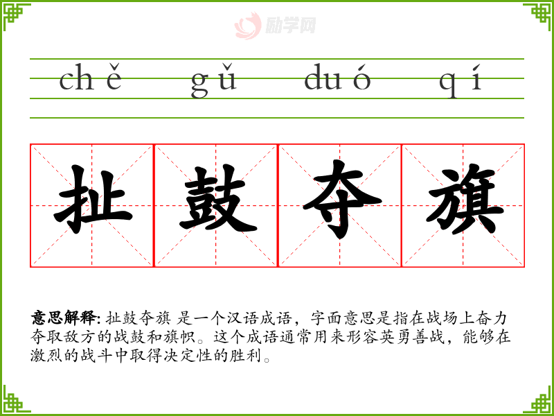 1.扯鼓夺旗的拼音是什么?扯鼓夺旗怎么读?