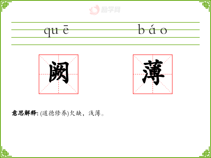 阙薄的意思是:(道德修养)欠缺,浅薄。