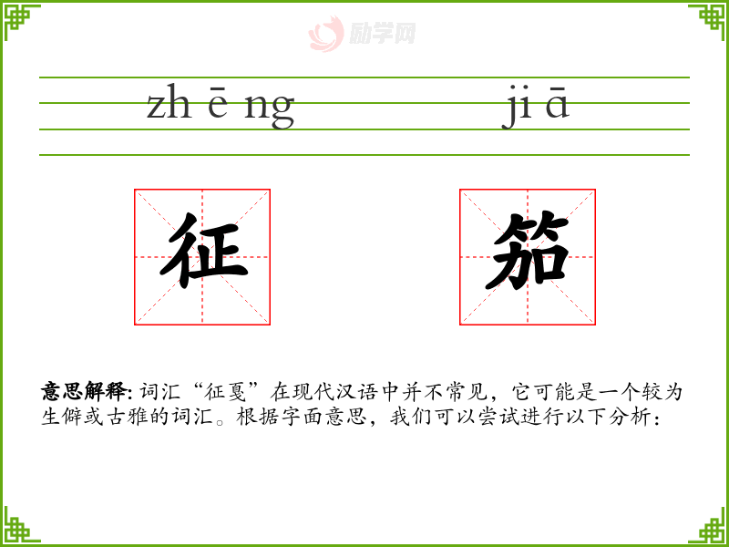 词汇“征戛”在现代汉语中并不常见,它可能是一个较为生僻或古雅的词汇。根据字面意思,我们可以尝试进行以下分析: