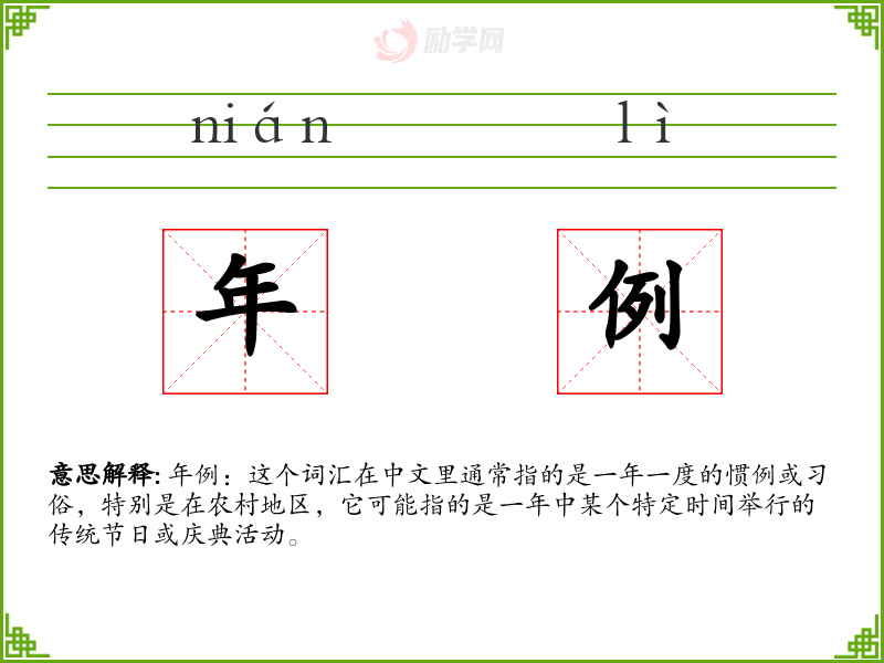 1.年例的拼音是什么?年例怎么读?