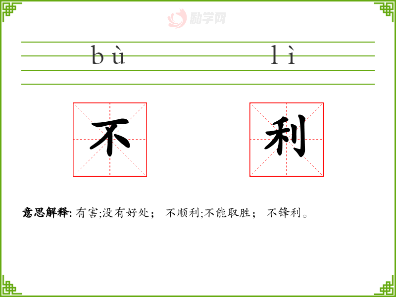 不利的意思是:有害;没有好处; 不顺利;不能取胜; 不锋利。