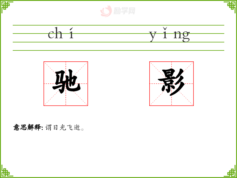 《广韵》-影,形影。 《吕氏春秋·功名》-犹表之与影。 《淮南子·修务》-吾日悠悠惭于影。