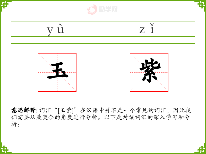 词汇“[玉紫]”在汉语中并不是一个常见的词汇,因此我们需要从最契合的角度进行分析。以下是对该词汇的深入学*和分析: