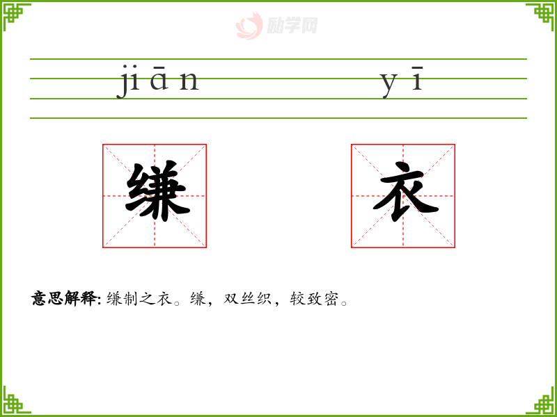 缣衣的意思是:缣制之衣。缣,双丝织,较致密。