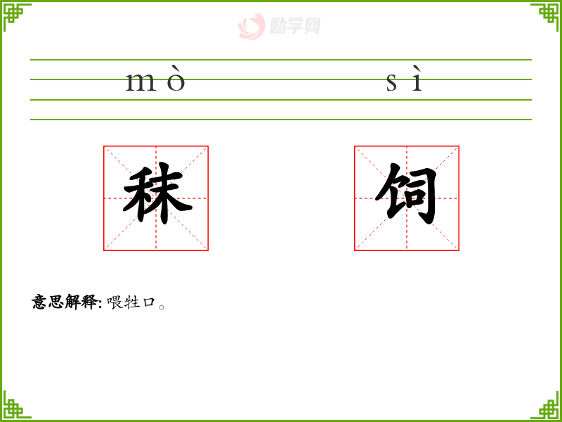 秣饲的意思是:喂牲口。