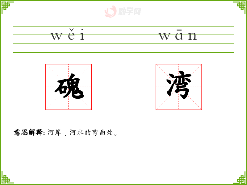 磈湾的意思是:河岸﹑河水的弯曲处。