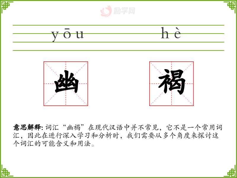 词汇“幽褐”在现代汉语中并不常见,它不是一个常用词汇,因此在进行深入学*和分析时,我们需要从多个角度来探讨这个词汇的可能含义和用法。