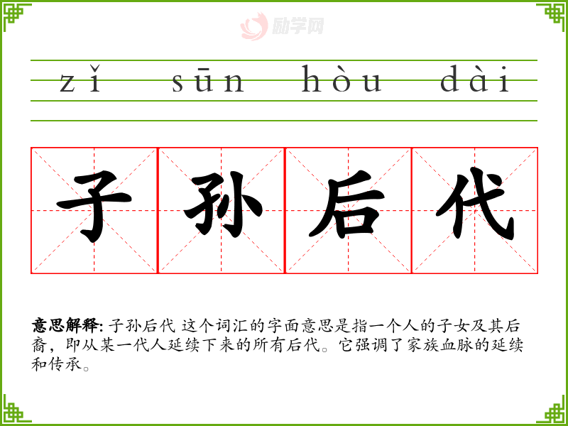 1.子孙后代的拼音是什么?子孙后代怎么读?