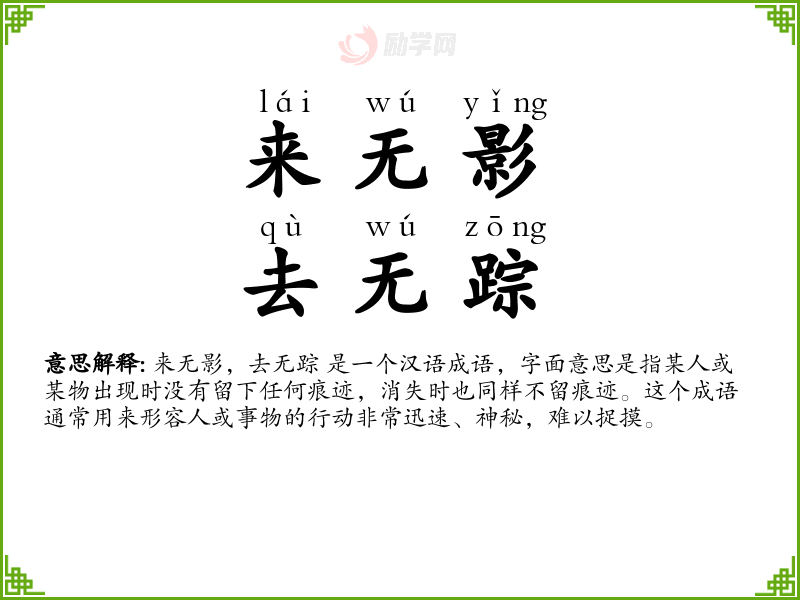 1.来无影,去无踪的拼音是什么?来无影,去无踪怎么读?