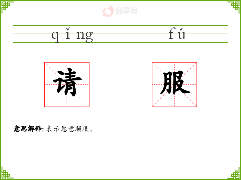 请服的意思是:表示愿意顺服。