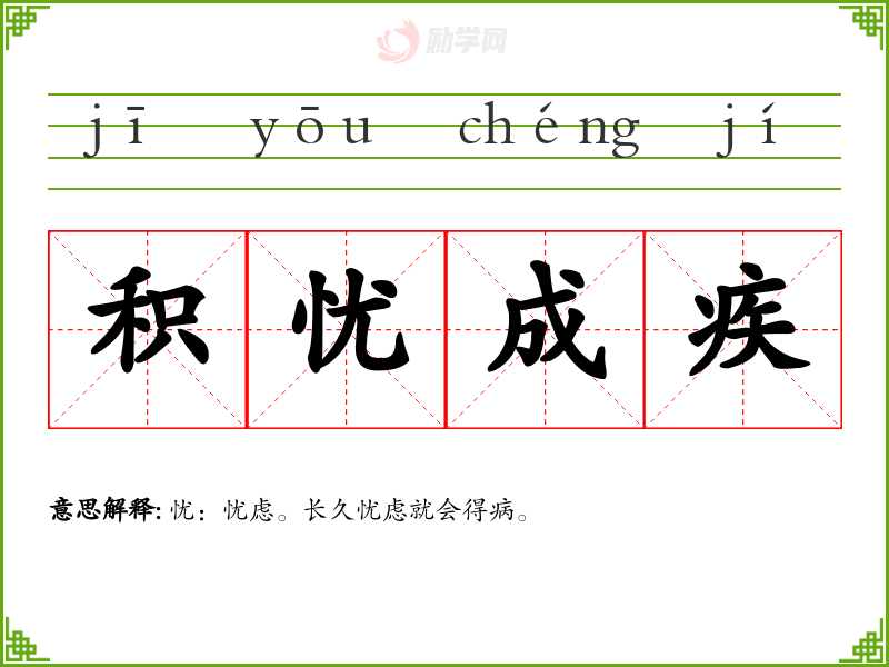 1.积忧成疾的拼音是什么?积忧成疾怎么读?