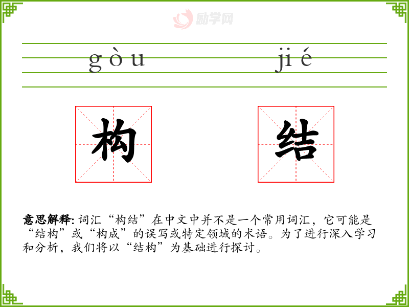 词汇“构结”在中文中并不是一个常用词汇,它可能是“结构”或“构成”的误写或特定领域的术语。为了进行深入学习和分析,我们将以“结构”为基础进行探讨。