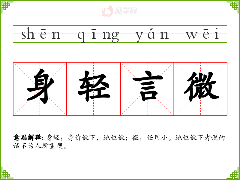 身轻:身价低下,地位低;微:任用小。地位低下者说的话不为人所重视。