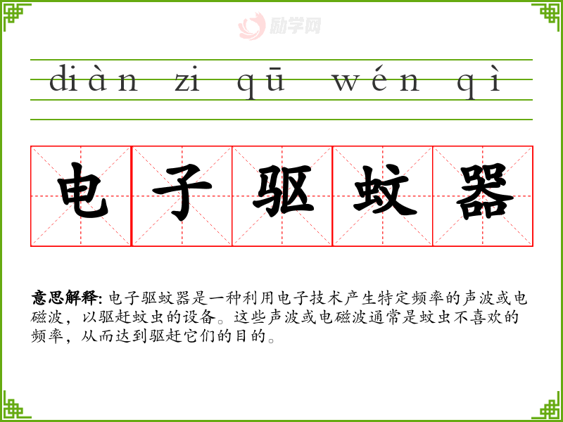 1.电子驱蚊器的拼音是什么?电子驱蚊器怎么读?