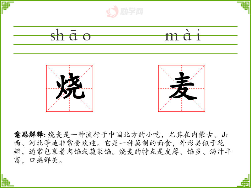 烧麦不仅是一种食物,它还承载着丰富的文化意义和情感价值。通过对烧麦的学*和分析,我更加深刻地理解了它在语言和文化中的重要性,以及它在个人生活中的特殊地位。