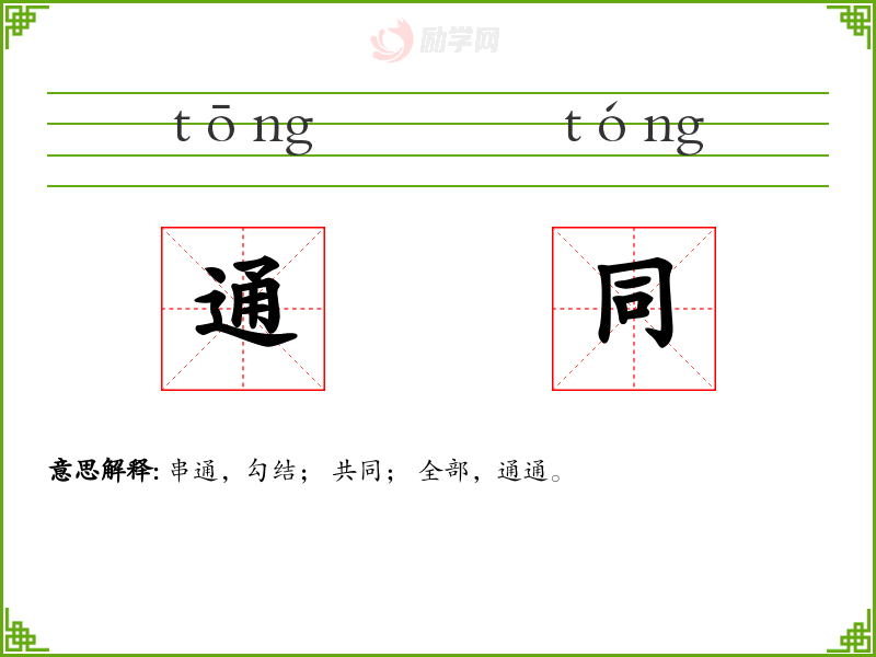 通同的意思是:串通,勾结; 共同; 全部,通通。