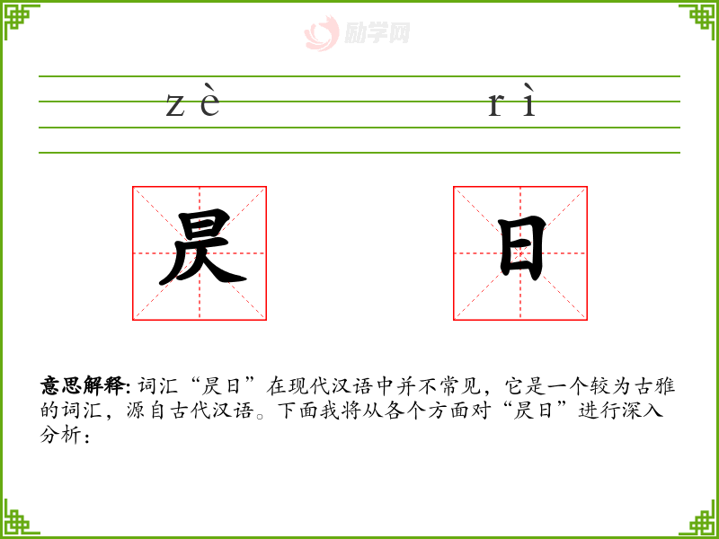 词汇“昃日”在现代汉语中并不常见,它是一个较为古雅的词汇,源自古代汉语。下面我将从各个方面对“昃日”进行深入分析: