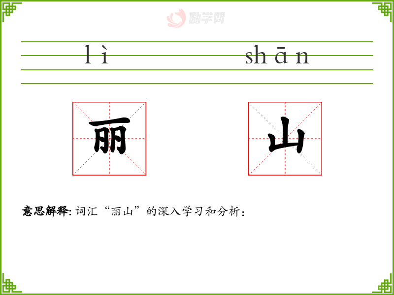 - 文学:在文学作品中,“丽山”常被用来描绘自然风光,营造诗意的氛围,如“丽山秀水”。
