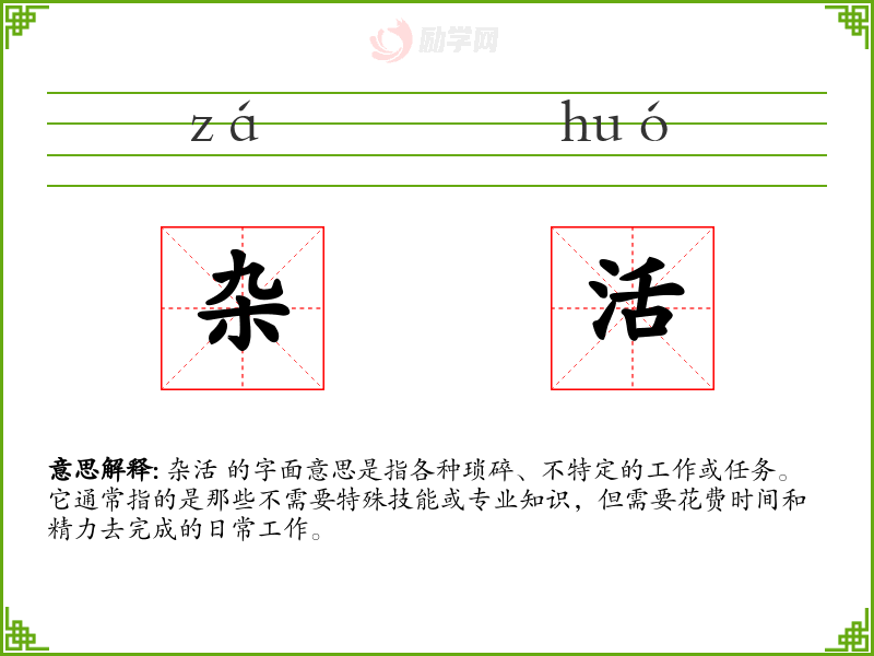 1.杂活的拼音是什么?杂活怎么读?