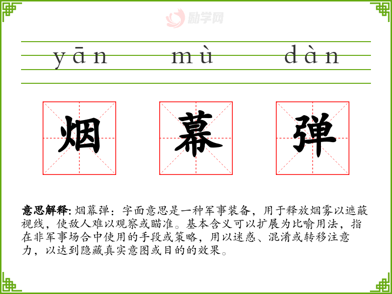 1.烟幕弹的拼音是什么?烟幕弹怎么读?