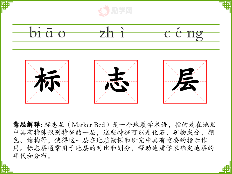 在不同语言中,标志层可能会有不同的翻译,但其核心概念——具有特殊识别特征的地层——是普遍适用的。