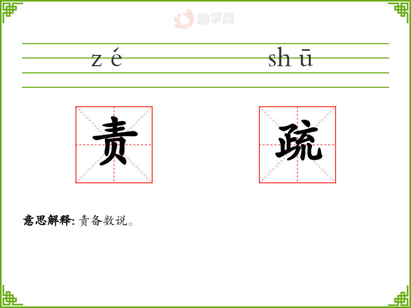 《周礼·小宰》。司农注:“称责,谓贷子。”-听称责以傅别。 《左传·昭公二十年》-薄敛已责。 《管子·轻重乙》-使无券契之责。 《汉书·淮阳宪王钦传》。注:“假贷人财物未偿者。”-博言负责数百万。 《书·金滕》-是有丕子之责于天。 《左传·桓公十三年》-宋多责赂于郑。 《战国策·齐策》-谁习计会,能为文收责于薛者乎? 《汉书·高帝纪上》-岁竟,此两家常折券弃责。