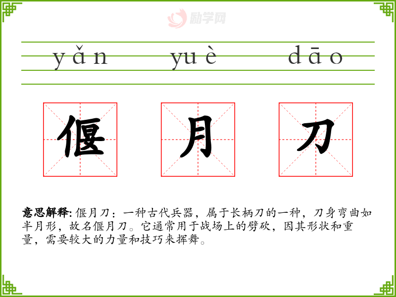 1.偃月刀的拼音是什么?偃月刀怎么读?
