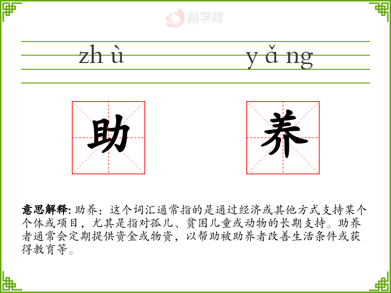 助养一词由“助”和“养”两个字组成,“助”意味着帮助,“养”意味着供养或抚养。这个词在中文中有着悠久的历史,但随着社会的发展,其含义和应用范围也在不断扩展。