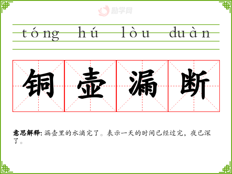 漏壶里的水滴完了。表示一天的时间已经过完,夜已深了。