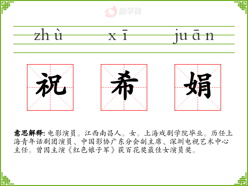 1.祝希娟的拼音是什么?祝希娟怎么读?