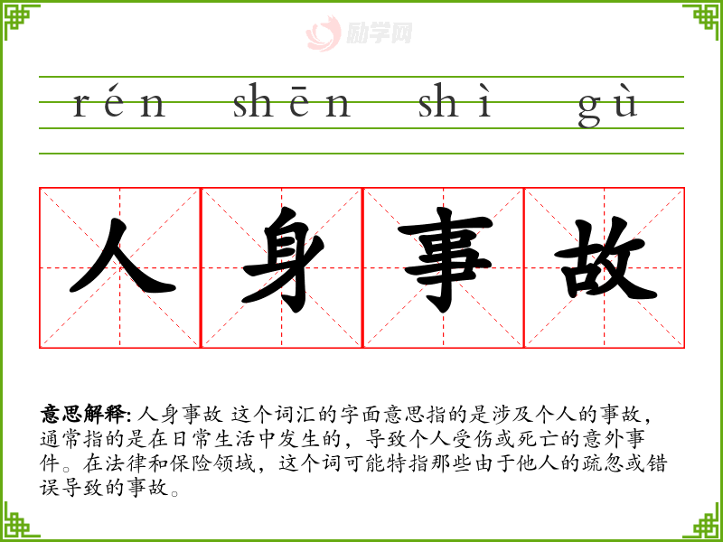 - 专业领域:在法律、保险和医疗领域,人身事故通常有更精确的定义,可能涉及特定的法律条款和赔偿程序。