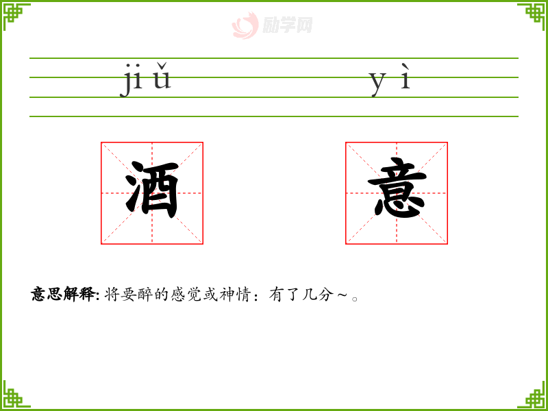 酒意的意思是:将要醉的感觉或神情:有了几分~。