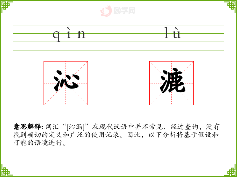 词汇“[沁漏]”在现代汉语中并不常见,经过查询,没有找到确切的定义和广泛的使用记录。因此,以下分析将基于假设和可能的语境进行。