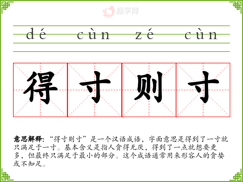 在文学中,“得寸则寸”常用于讽刺或批评那些贪得无厌的人。在口语中,这个成语可以用来形容某人小气或只满足于眼前的小利益。在专业领域,如经济学或心理学,这个成语可能被用来讨论人的欲望和满足感。